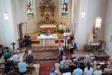 Ob es nun 360 oder 400 Gottesdienstbesucher waren, konnten wir nur schätzen, denn zählen war gar nicht mehr möglich. Die Kirche in Ottersheim war bis auf den letzten Platz besetzt, die Leute saßen zum Teil sehr eng in den Bänken, im hinteren Bereich standen noch viele Leute und manche sind dann gar ganz draußen geblieben. Also so genau können wir die Zahl gar nicht angeben. Zum Vergleich: Letztes Jahr nahmen in beiden Fronleichnamsfeiern zusammen 318 Personen teil. Lesen Sie mehr.....