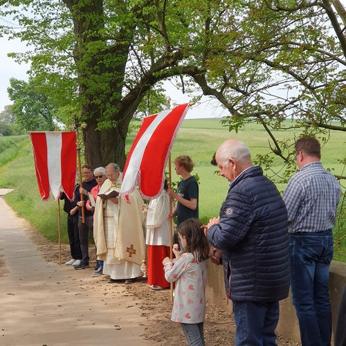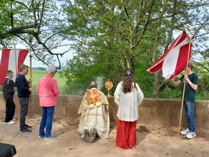 Also machten wir uns nach der feierlichen Hl. Messe auf den Weg, nahmen Jesus Christus im gewandelten Brot, seinem Leib, mit auf die naheliegenden Felder, beteten für eine gute Ernte und ein gutes Gelingen unserer tagtäglichen Arbeit und segneten alle Ländereien.