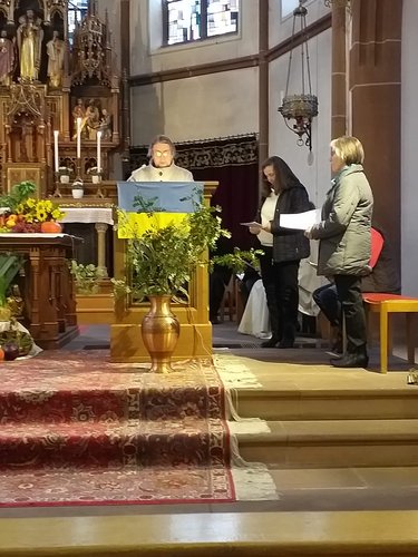 Ein herzliches Dankeschön dem Presbyterium der protestantischen Kirche und dem Gemeindeausschuss Göllheim sowie Pfarreirat der katholischen Kirche, dem Ökumenekreis, der kfd für den Brotverkauf, den Landfrauen für das leckere Mittagessen, der Nepomukband für die musikalische Gestaltung, den Wirten des Nepomukhauses für die Bewirtung, allen, die zur Schmückung des Erntedankaltares beigetragen haben und allen, die gekommen waren, sowie Herrn Driedger und Herrn Pfarrer Rummer.
