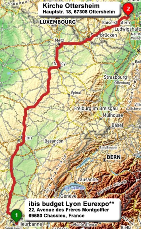 | 12:00 | Pause an der Raststätte Aire de Langres - Noidant | Pausendauer: 1 h |