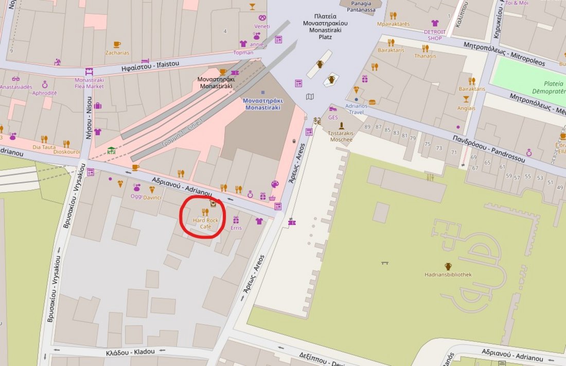 | 17:00 | Hard-Rock-Café Αδριανού 52, Αθήνα 105 55 Adrianou 52, Athens 105 55 Telefon: +302103245170 Mail: athens_sales@hardrock.com | Bitte seid pünktlich, denn das Hard-Rock-Café bietet ein Zeitfenster von nur 15 Minuten, dann werden die Plätze storniert und anderweitig vergeben! |