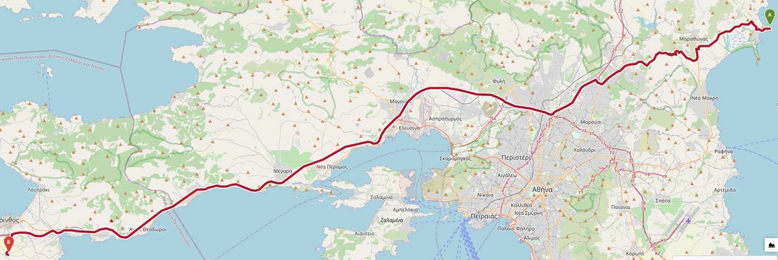 | anschl. | Rückfahrt nach Schinias | Distanz: 122 km • Fahrzeit: 2,5 h |